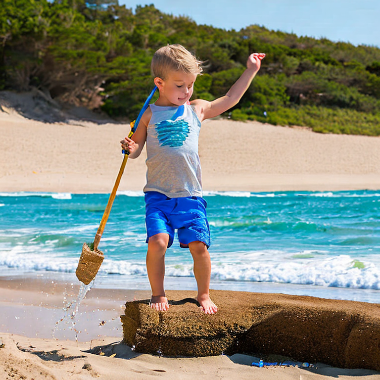 We see a young Jack playing on the beach, building sandcastles and splashing in the water.