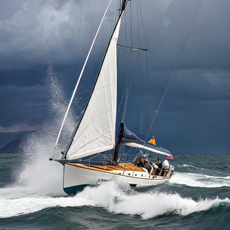 We see a storm raging on the ocean, with waves crashing against Jack’s sailboat.