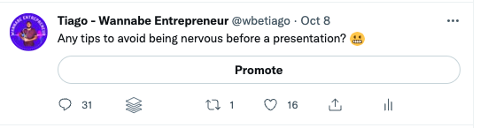 I asked Twitter for tips on how to be less nervous before my talk and got back a lot of useful information.