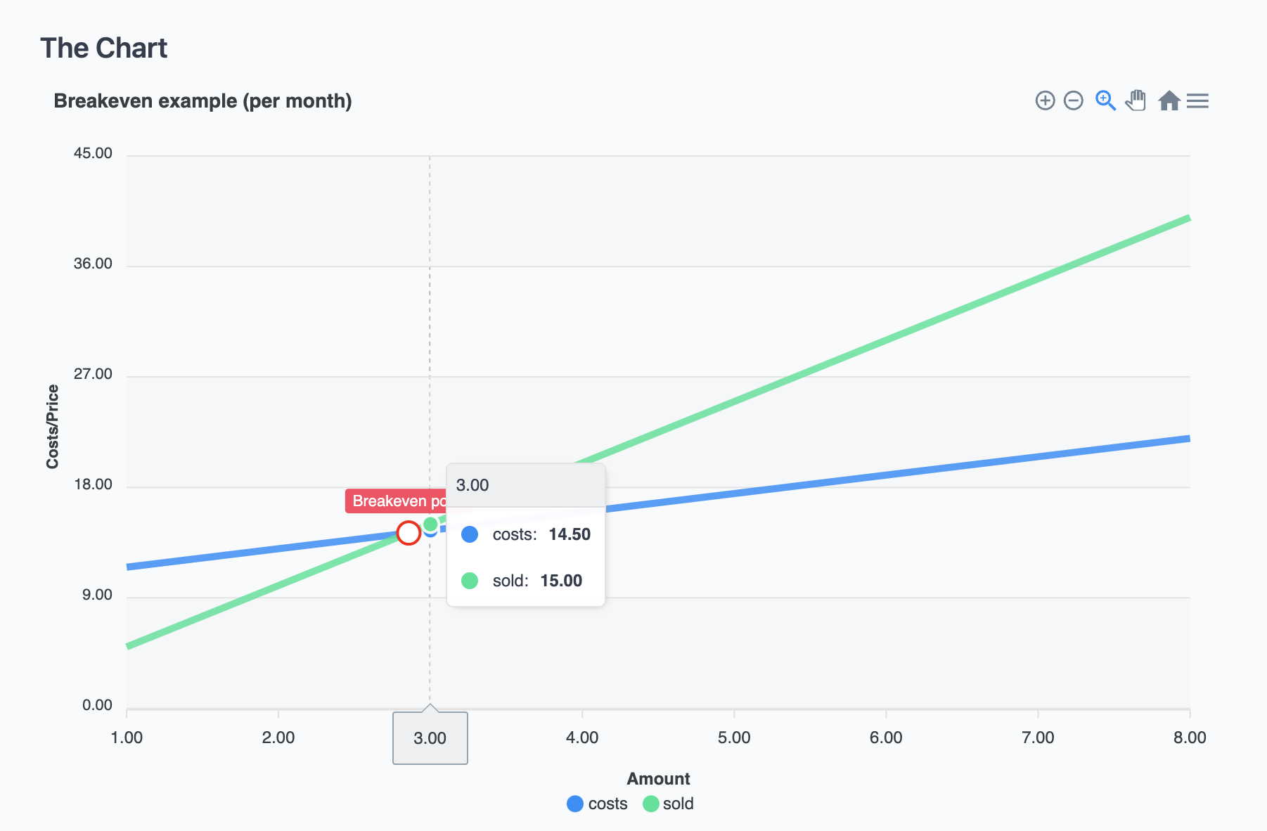 We just have to input our fixed and running costs and the selling price and let the tool crunch the numbers.