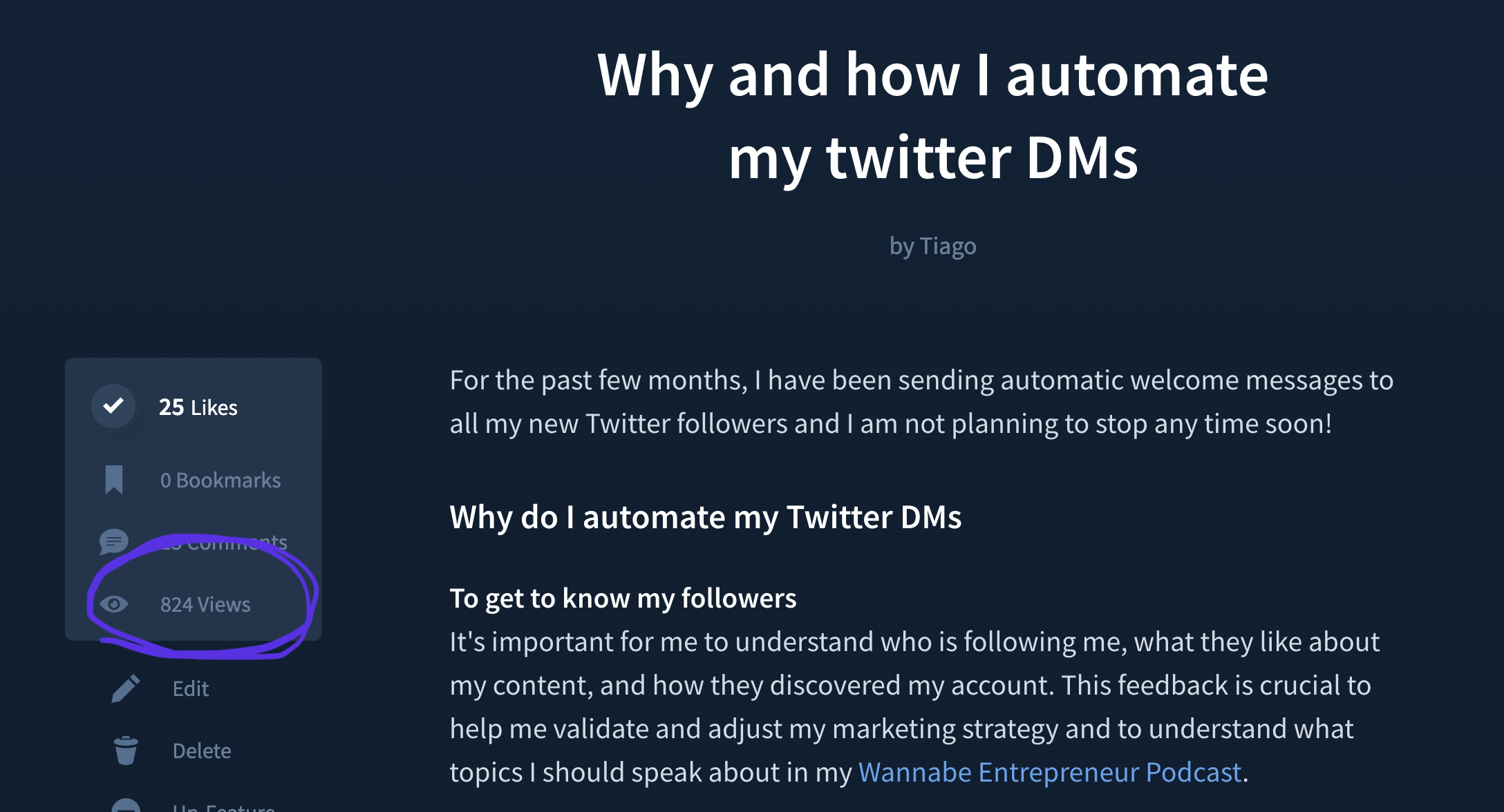 This post got 25 likes and 824 views.