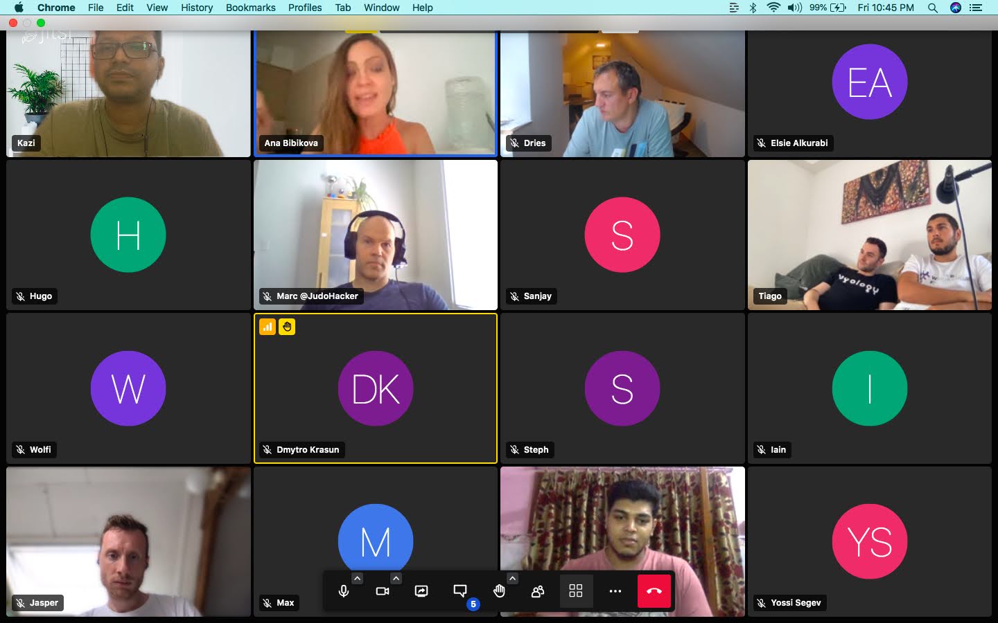 Scheduling the first meeting was the most challenging step given the fact that members live in different time zones. Once everyone was happy with the time, we found that the best way to proceed was to agree to meet on the same day and hour each week.